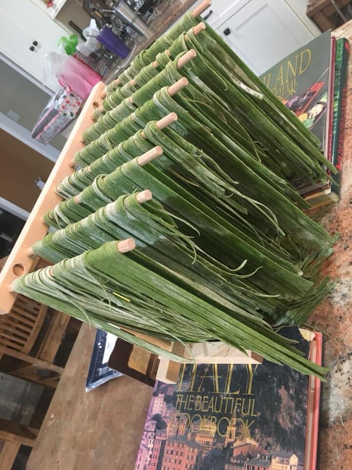 For cutting the pasta, life is much easier if you have a pasta machine either hand cranked or electric! Follow directions for your specific pasta machine (we like our fettuccine on the thick side).